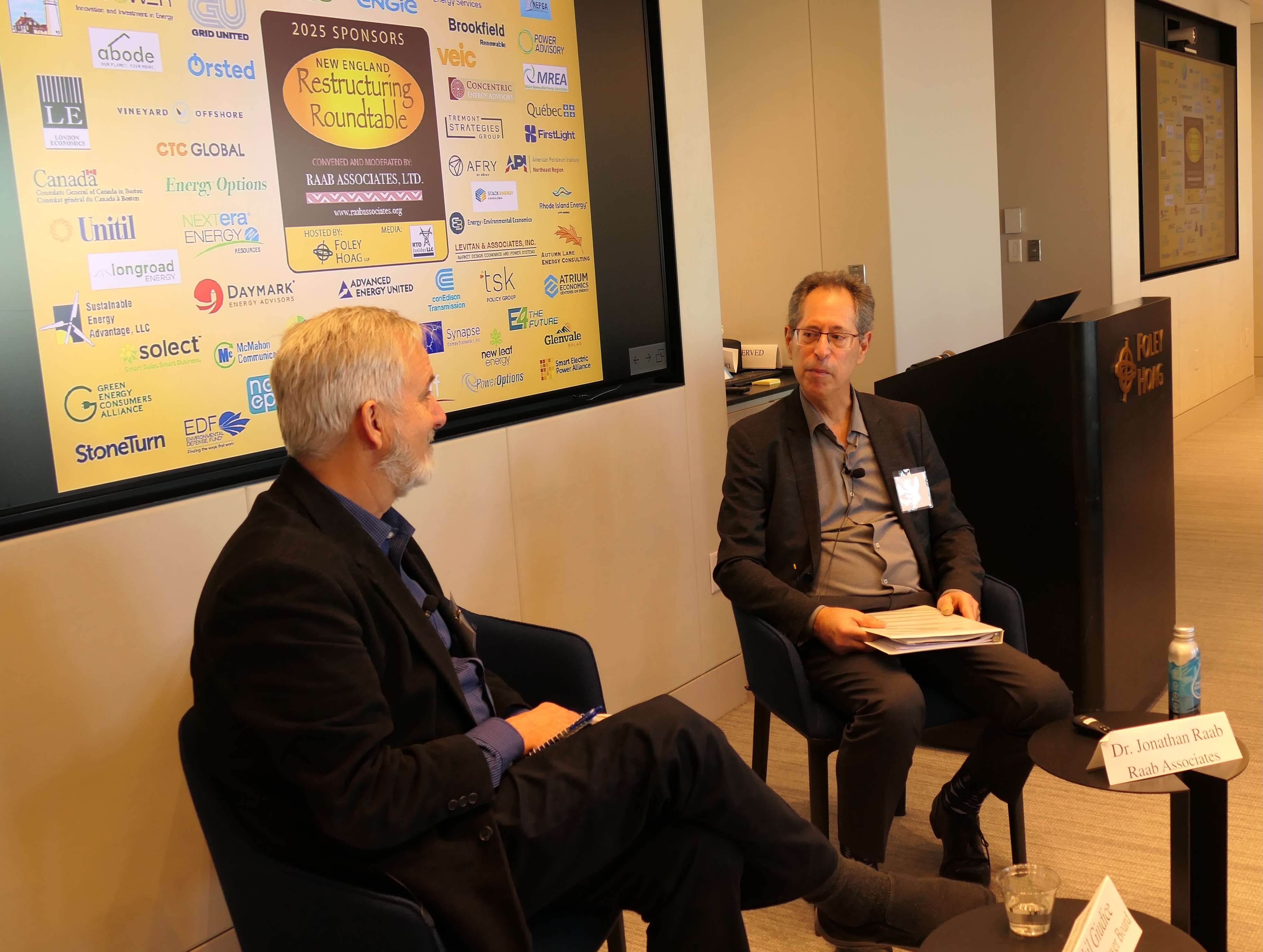 FirstLight Board Chair Phil Giudice interviewing Dr Jonathan Raab about the history of the Roundtable. Photo courtesy of RTO Insider. |